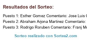 Este sorteo ha sido certificado por Sortea2. Sortea2 garantiza que: