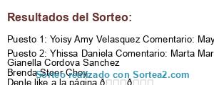- Ganador 2: Yhissa Daniela Comentario: Marta María Gianella Cordova Sanchez Brenda Steer Choy Denle like a la página 💕💕
