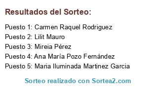 Lista de participantes: Abe Gonzalez , Adela Latorre Grau , Adela SeMo , Adelina Palacin , Adoración Salútregui , África García , Agueda Bartolomé , Agustina Hernandez Mendez , Aida Diaz , Aida Garcia Muñoz , Aida Mas Campos , Ainhoa P. Juárez González , Aino DM , Alana Rabal Balsámica , Alba Cordon Rodrigo , Alba Ramos Gonzalo , Alcázar Auxi , Ale Hop , Alejandra González Gómez , Alejandra Soto , Alicia Caro , Alicia Gamiz Tofé , Alicia Lopez Martin , Alicia MA , Alicia Pozo García , Alis Mtnez , Almudena Jimenez Barco , Almudena Junco Alvarez , Almudena Perez Calvillo , Amalia Escalera , Amalia Sales Navalon , Amaya Aparicio Redondo , Amaya Santesteban , Amelia Serrano , Ampa Amparo Amparito , Ampa Muñoz González , Ampa Ortiz Martínez , Amparito Roman , Amparo de la Rubia , Amparo Gomez-calcerrada Moreno , Amparo Martinez Lozano , Amparo Palacios Saez , Amparo Vargas Romero , Ana AC , Ana Arribas Vara , Ana Belén Chamizo Jurado , Ana Belen Martin , Ana Belén Moreno ¡ , Ana Belén Mpsm , Ana Belen Quesada Perez , Ana Belen Sancho , Ana Belen Saravia Salinas , Ana Ber , Ana Berenguel , Ana Cabrero , Ana Cris , Ana de la Rubia , Ana Denia , Ana Dorado Avila , Ana Fuentes , Ana G Lopez , Ana García , Ana Isabel Blazquez Alvarez , Ana Isabel Cano , Ana Isabel Fuentes , Ana Isabel Mangas , Ana Llera Manso , Ana Lopez , Ana M Gutierrez , Ana Maria Becerra , Ana Maria Castillo Pedrosa , Ana María Cordero , Ana Maria Gonzalez Corrales , Ana Maria Izquierdo , Ana Maria Lucaci , Ana María Noguera García , Ana María Pozo Fernández , Ana Maria Val , Ana María Vidal Delgado , Ana Medrano , Ana Molina Molina , Ana Morales , Ana NiNu , Ana Ortega Camps , Ana Pascual de Benito , Ana Perellon Perez , Ana Perez Periago , Ana Primo , Ana RdGz ¡ , Ana Sanchezpico , Ana Sanjoaquín ¡ , Ana Sedga , Ana Senar ¡ , Ana Solera Jimenez , Ana Trillo , Ana Vanesa Vaswani Aguiar , Ana Vazquez , Ana Vera , Anabel Castillero , Anabel López , Anais EC , Anamary Alba , Andrea Baños , Andrea Martinez Asla , Angela Chica Hernandez , Angela Galvez , Angela García Punzano , Ángela González Gala , Angela Luque Campillo , Ángela Salgueiro , Angeles Arroyo Gomez , Angeles González González , Angeles Marquez Quiros , Angeles Martinez , Angélica Bernal , Angelica Choco , Angelica Fernandez Gonzalez , Angelines Fernandez , Angi Safont Panisello , Ani Bel , Anita G. Ramos , Anita Gonzalez , Anna Balabanova , Anna Belen Lopez Balseiro , Anna Mejia , Anna Mir de Gea , Annie Paredes , Antonia Alcantud Relleno surco lagrimal , Antonia Jimenez , Antonia López , Antonio Galvez , Antonio Garcia , Antonio GN , Ara Blanca Blázquez , Araceli Losada , Araceli Roman , Aranza Cfm , Ariane Montes , Aritzar Aritzar ¡ , Aroa Cruz Hernandez , Ascen Alises , Ascen Rodríguez , Ascension Gasco Felipe , Asuncion Cuñago Carmona , Au Revoir Cristina , Auri Martínez , Auxi Panero , Auxi Rosae , Azahara María Noguera Martínez , Be Balo , Bea Garcia , Bea Perez , Bea Triz Rodriguez , Beatriz Alameda Anton ¡ , Beatriz Bastos Taboada , Beatriz de Castro , Beatriz Gallo , Beatriz García Barrero , Beatriz Garcia , Beatriz Guijarro , Beatriz Martin-pintado , Beatriz Perez , Beatriz Tre , Beatriz Vallejo Ramos , Beatriz VC , Beatriz Winchester , Begoña C. Ortega , Begoña Diago Martinez , Begoña Freire , Begoña Vañes Diez , Beka Rodríguez , Belen Gomez , Belinda Pinero Sánchez , Bella Gonzalez Fernandez , Benito Ramirez , Bernardo Calatayud Iborra , Bernardo Murillo , Bibiana Pulgarin Fonseca , Blanca Fernandez Lopez , Blanca FuReque , Blen Onlyone , Bonnierth Humberth , Brooke Davis , C Téllez Joana , Camino Omedes , Cantudo Sánchez Maria del Carmen , Carabi Las Palmas , Carla Del Olmo Leung , Carlita Torres H , Carmen Aragonés Cantero , Carmen Bernal Alvarez , Carmen Cao Fernández , Carmen Castillo , Carmen Del Oso Rodriguez , Carmen Dominguez Mendez , Carmen Fernandez Suarez ¡ , Carmen GimVal , Carmen Iglesias Chorro , Carmen Lopez Martinez , Carmen Maria Bonilla Cadenas , Carmen Martín , Carmen Martinez Ruiz , Carmen Martinez Saez , Carmen Monago Benavent , Carmen Montero , Carmen Pinel Aguilar , Carmen Rámila Valladolid , Carmen Raquel Rodriguez , Carmen Rico , Carmen Rm , Carmen Rozada Gonzalez , Carmen Sa , Carmina Torregrosa Martinez , Carolina Benítez Sala , Carolina Diaz Formoso , Carolina Fernandez , Carolina Fernandez Antiojeras , Carolina Galvez Bardaji , Carolina Gomez , Carolina Herrero Llorente , Carolina López , Carolina Montes Bernal Accion antiojeras y antibolsas , Carolina Pizon , Carolina Pueblas , Carolina Roger Manzano , Carolina Tamayo , Carolina Torres , Cati Font Blanco , Cati HCampanero , Cati Torrente , CE Fernández , Cecilia Vallés Mas , Celeste Mendoza Hilton , Celia de la Vega , Cesareo Planton Salguero , Chari Falcon Palma , Chari Garcia , Chari Morales Cervera , Charo Corredor Mtnez , Chiclanera Fabi , Chus Llorente , Cintia Cedro Lopes , Cintia Exposito , Ciprian Jevelry , Clara Gómez , Clara Monroy Muñoz , Clara Pardo , Claudia Sandobal Vera , Conchi Lop Rod , Conchi Ojeda , Conchi Puche , Conchita Girones , Consuelo Cremades Martínez , Cookie Celia , Cris Alonso , Cris Galarza , Cris Gill , Cris Minguez Bueno , Cris RM , Crispi De Torre Torre , Crispi San , Criss Garrido Romera , Cristiana Elena Sera , Cristina Alvarez , Cristina Asensio , Cristina Coffeelover , Cristina Díaz Bermúdez , Cristina FZ , Cristina Garcia , Cristina Madre De Daniel Borrajo , Cristina Mihaela , Cristina Nicola , Cristina NoMo , Cristina Perez Mayoral , Cristina Puerto , Cristina Ruiz ¡ , Cristina Tornero Cespedes , Cynthia Alguacil Fernandez , Dácil Medina Ramos , Dacil Mesa Francisco , Daida Bethencourt Garcia , Dana Alejandro , Dana Coco , Dana MOrena , Darmy Collins , David Ramirez Sanchez , Dea Volaric , Desirée Moreno Morante , Désirée Sanz , Diana Castillo , Diego Alonso , Dolo Garcia , Dolores Gelardo , Dolores Sola Benedito , Ekaterina Kosonogova , Ela Moral , Elda De