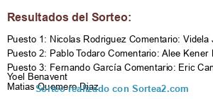 - Ganador 1: Nicolas Rodriguez Comentario: Videla Jonathan Miguel Torales Hector Tafetani
