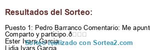 - Ganador: Pedro Barranco Comentario: Me apuntooo Comparto y participo.🍀 Ester Ivars Garcia Lidia Ivars Garcia Francisco Gisbert Anabel Piera Anders Jose Benavent Masanet