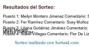 - Ganador 1: Meilyn Montero Jimenez Comentario: Sugey Jimenez, Paola Cordero