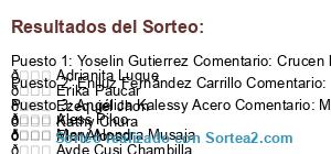 - Ganador 2: Karla Chaparro Comentario: Sarita C'r Beatriz Maricela Karolyn Paredes Sheyla Durand Almendra Paredes