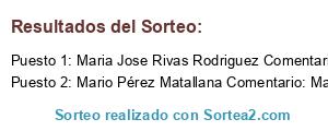Este sorteo ha sido certificado por Sortea2. Sortea2 garantiza que: