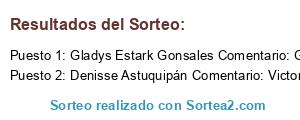 - Ganador: Gladys Estark Gonsales Comentario: Gladys Gonzales Nazario Yomira Estar Gonzales Yordano Collantes Jhunior Baldeon Pardo tenemos que ganar esta vez siiiiiiiii.