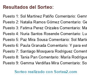 - Ganador 9: Gemma Verdiñas Mira Comentario: Sol Martinez Patiño y Natalia Ramos Gómez
