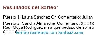 - Ganador: Laura Sánchez Gri Comentario: Julian Sanmartin Cubas a ver si nos toca