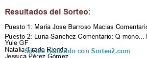- Ganador: Maria Jose Barroso Macias Comentario: Anabel Ferreras Emma Roldan Nuñez Javi Ana Serralvo Fernandez para mi en celeste!!!