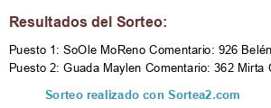 - Ganador 1: SoOle MoReno Comentario: 926 Belén Mansilla🍀🍀
