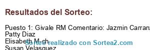 - Ganador: Givale RM Comentario: Jazmin Carranza Patty Diaz Elisabeth M-ch Susan Velasquez Aida Morocho Chinchay Participen 🎉 Suerte🤞