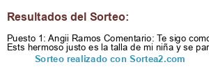 - Ganador: Angii Ramos Comentario: Te sigo como @angii.nr Ests hermoso justo es la talla de mi niña y se parece a un sueter que tengo nos veriamos lindas vestidas igual <3 Karen Gamarra Angela Ramos Yesii CR Pamela Ñ. Huamani Angela Felix Villegas