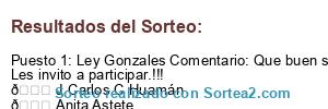 Lista de participantes: Sorteo realizado entre 109 participantes..