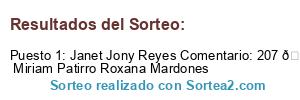 - Ganador: Janet Jony Reyes Comentario: 207 😊 Miriam Patirro Roxana Mardones
