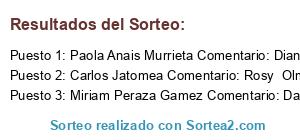 - Ganador 3: Miriam Peraza Gamez Comentario: Daira Murrieta