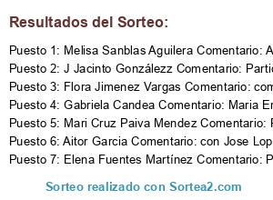 - Ganador 3: Flora Jimenez Vargas Comentario: comparto y me apuntooo JCarles Carljan Sonia Fj