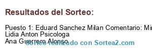 - Ganador: Eduard Sanchez Milan Comentario: Mireya Muñoz Castillejos Lidia Anton Psicologa Ana Guerrero Alonso