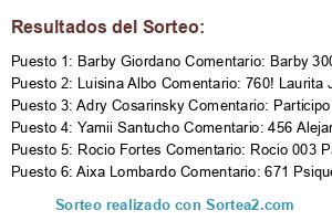 - Ganador 2: Luisina Albo Comentario: 760! Laurita Joffre Verónica Porto Stefi Anahi