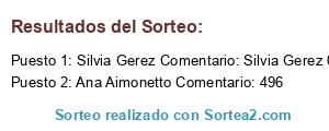 - Ganador 1: Silvia Gerez Comentario: Silvia Gerez 067 quiero ganar