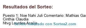 - Ganador: Noe Nahi Juli Comentario: Mathias Garcia Cinthia Claudia Ntvg Lourdes Araújo