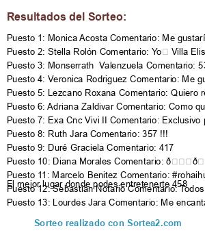 - Ganador 1: Monica Acosta Comentario: Me gustaría ganar😍, 728 mi c.i