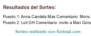 - Ganador: Anna Candela Mas Comentario: Moris Jeff Sassi Antonia María Moreno García Sonia Botella Molina