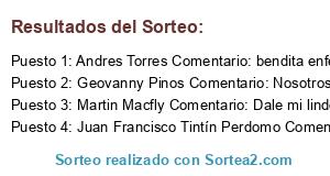- Ganador 3: Martin Macfly Comentario: Dale mi lindo y querido equipo porque eres grande mi Macara el domingo ganamos carajo