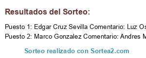- Ganador 2: Marco Gonzalez Comentario: Andres Monge .vamos pa vea que calidad