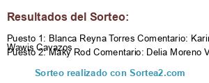 - Ganador 1: Blanca Reyna Torres Comentario: Karina Almaguer Wawis Cavazos