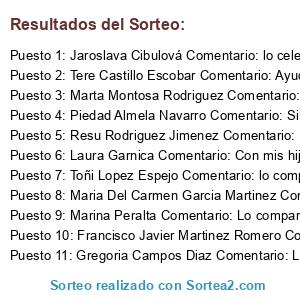 - Ganador: Jaroslava Cibulová Comentario: lo celebro con mis cuatros amorsitos pequeñitos,con mis hijos i un angel mi vida don Felipe.lo regalo un coche que conduse solo,para cuanto anda ayudar gente que puede tranquilamente rezar..es angel que caido de cielo para gente pobre...
