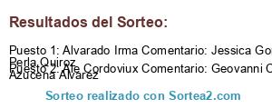- Ganador 1: Alvarado Irma Comentario: Jessica Gonzalez Perla Quiroz Azucena Alvarez