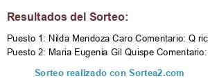 - Ganador 2: Maria Eugenia Gil Quispe Comentario: Que rico almuerzo 😋 me encantaria ganar Chicas participen Tori Gil Quispe Teresa Rosario Molina Luna Florcita Vega Fernandez con fe y cruzar los deditos 🙏🙌🍀✌