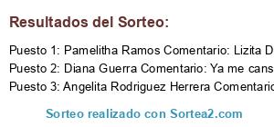 - Ganador 3: Angelita Rodriguez Herrera Comentario: Uno para mi rosa olivares.jessica cuela . Karla cuela.