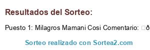 - Ganador: Milagros Mamani Cosi Comentario: ❤😘👑 a ganar se dijo 👏💚