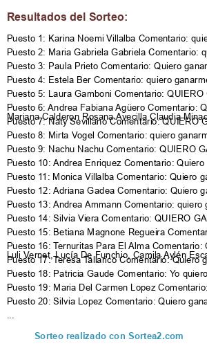 - Ganador 7: Naty Sevillano Comentario: QUIERO GANARME LA ENTRADA! Marcela Crespo Maria Belen Crespo Verito Fernandes