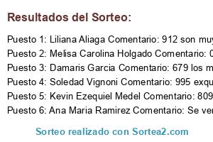 - Ganador 4: Soledad Vignoni Comentario: 995 exquisitos!!!!!!
