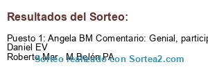 - Ganador: Angela BM Comentario: Genial, participo Daniel EV Roberto Mar . M Belén PA
