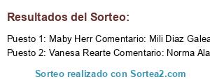 - Ganador 2: Vanesa Rearte Comentario: Norma Alarcon