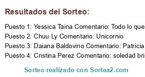 - Ganador 3: Daiana Baldovino Comentario: Patricia Guiñazu Yesy Sena !!! Tematicaa unicornios!!