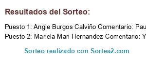 - Ganador 1: Angie Burgos Calviño Comentario: Paula Vg Omar Burgos 585