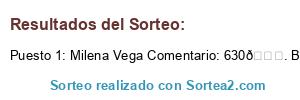 - Ganador: Milena Vega Comentario: 630🍀. Bianca Clara Vega Agustina Vega Luana Vega ..
