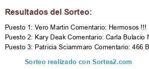 - Ganador: Vero Martin Comentario: Hermosos !!! Melina Fratini Daniela Garcia Ester Segretin