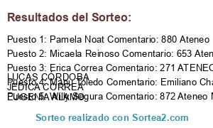 - Ganador 1: Pamela Noat Comentario: 880 Ateneo Mariano Moreno Voley