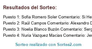 - Ganador 1: Sofia Romero Soler Comentario: Si Herminia Rueda a ver Si tenemos suerte