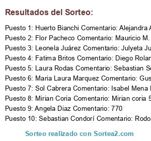 • Ganador 8: Mirian Coria Comentario: Mirian coria 573 karina y flrencia Me gusta