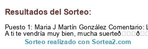 - Ganador: Maria J Martín González Comentario: Luzma Martín González A ti te vendría muy bien, mucha suerte🍀🍀