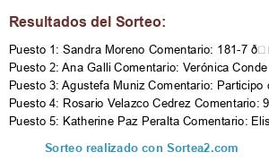- Ganador 1: Sandra Moreno Comentario: 181-7 💞👏👏🍀 Diamela Vila Romina Patetta Lelia Mendez