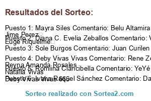 - Ganador 4: Deby Vivas Vivas Comentario: Rene Zeballos Reyna Amanda Rosales Natalia Vivas Deby Vivas Vivas 665