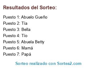 Lista de participantes: Mamá, Abuela Betty, Bella, Papá, Abuelo Gueño, Tía, Tío.