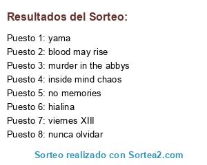 Lista de participantes: no memories, nunca olvidar, yama, blood may rise, hialina, inside mind chaos, murder in the abbys, viernes XIII.