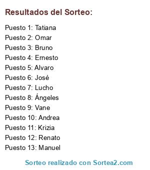 Accesibilidad del sorteo: El sorteo es público. Todo el mundo podrá acceder a él desde el listado de sorteos guardados.